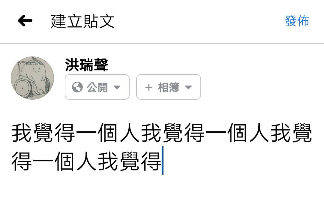 像我的就是:「我覺得一個人我覺得一個人我覺得一個人」